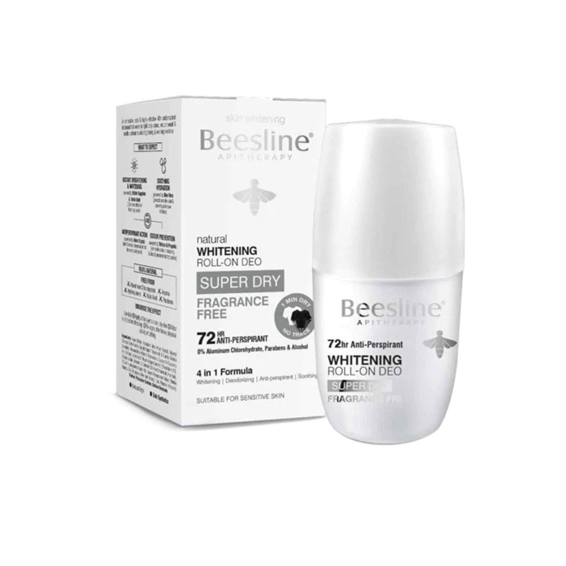Beesline Whitening Roll On Deo Super Dry Fragrance Free 50ml is an innovative, safe & highly effective 72hr antiperspirant deodorant that provide a super dry feel & ultimate freshness. Works to fight body odour, reduce sweat & soothe underarm while lightening and evening skin tone.