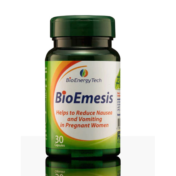 BioEmesis is a unique product combining the positive effects of natural Ginger Root powder & Vitamin B6 that help control and reduce nausea and vomiting in pregnant women without causing any drowsiness effects .