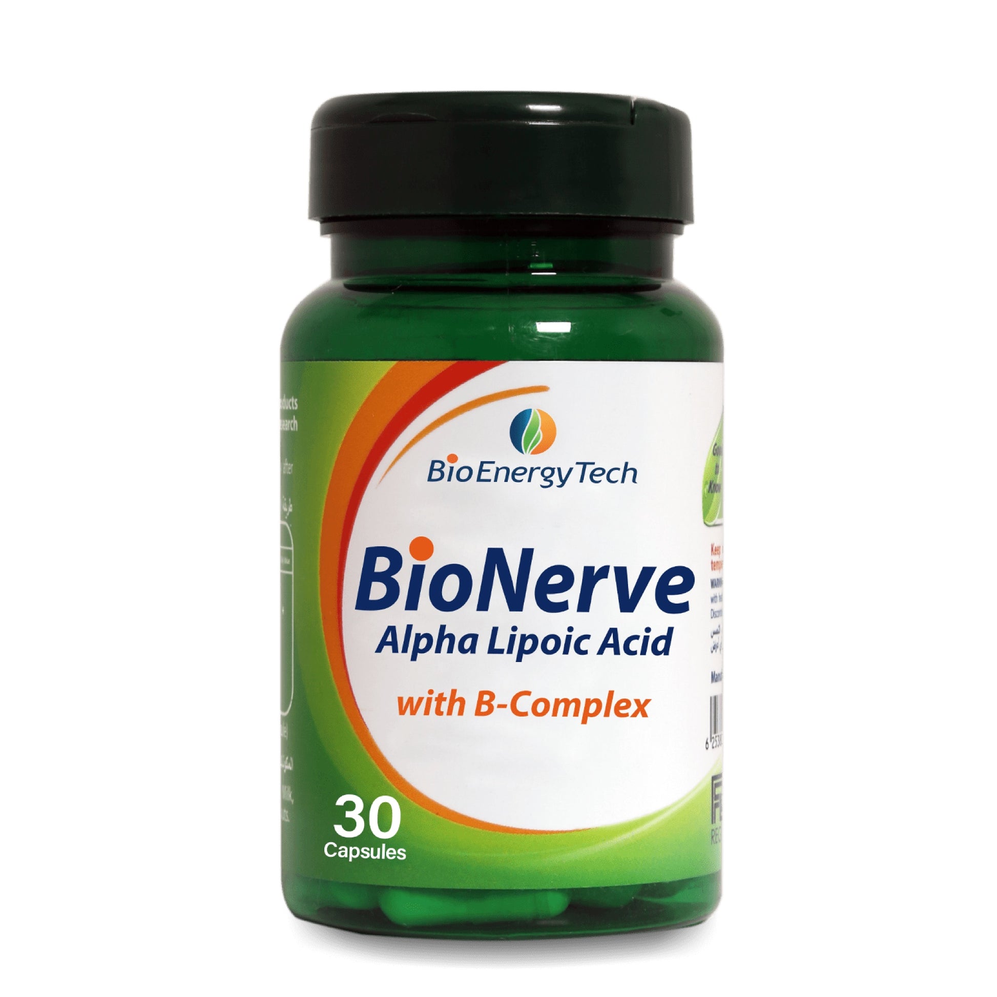 BioNerve contains a unique blend of Alpha Lipoic Acid at a high concentration of 600 mg and B-Complex Vitamins to promote proper energy metabolism, healthy nerve function as well as support the regeneration and development of nerve cells