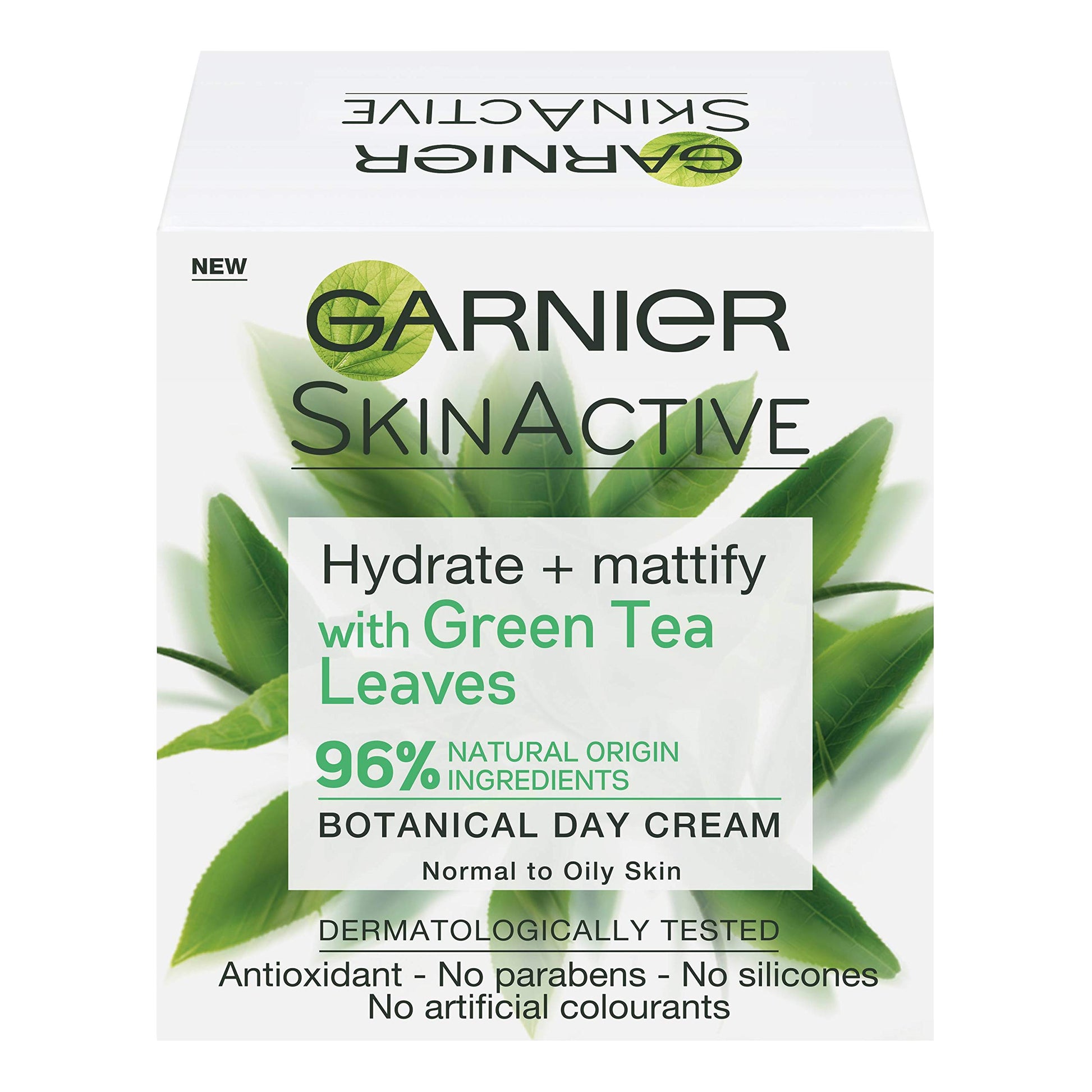 This purifying day cream with green tea leaves extract is a part of Garnier's new generation of hydrating formulas made with 96% ingredients from natural origin. Specially formulated to mattify skin: - Enriched with green tea leaves, known for its purifying power, it's formula leaves skin looking mattified as if rebalanced. - Enriched with a natural antioxidant to help protect skin day after day against the harmful effects of the environment. Apply morning and evening on the face. We recommend to cleanse the skin first with Garnier's Botanical Green Tea Leaves Gel Wash.