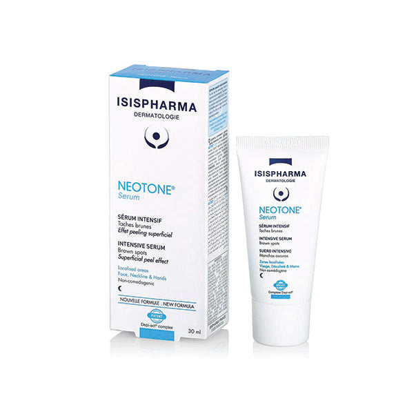 NEOTONE is extremely efficient in removing pigmentation spots combining 6 powerful synergetic actives which reduce their intensity and contribute to their elimination./ DIACETYL BOLDINE: prevents the apparition of melanin / LICORICE +ARBUTIN + ASCORBIC ACID: slow down the melanogenesis through the attenuation of the tyrosinase’s action / GLYCOLIC ACID + SALICYLIC ACID: exfoliate the preformed melanin.