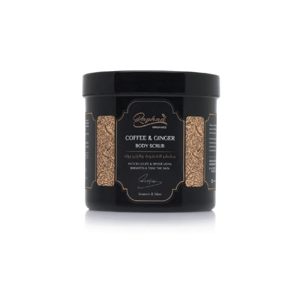 A body scrub consisting mainly of coffee beans that contain caffeine, which contributes with its antioxidant properties to remove dead cells accumulated on the surface of the body, giving it freshness and silky texture, and ginger, which disinfects and purifies the body, contributes to stimulating blood circulation and accelerates the healing of wounds and scars.