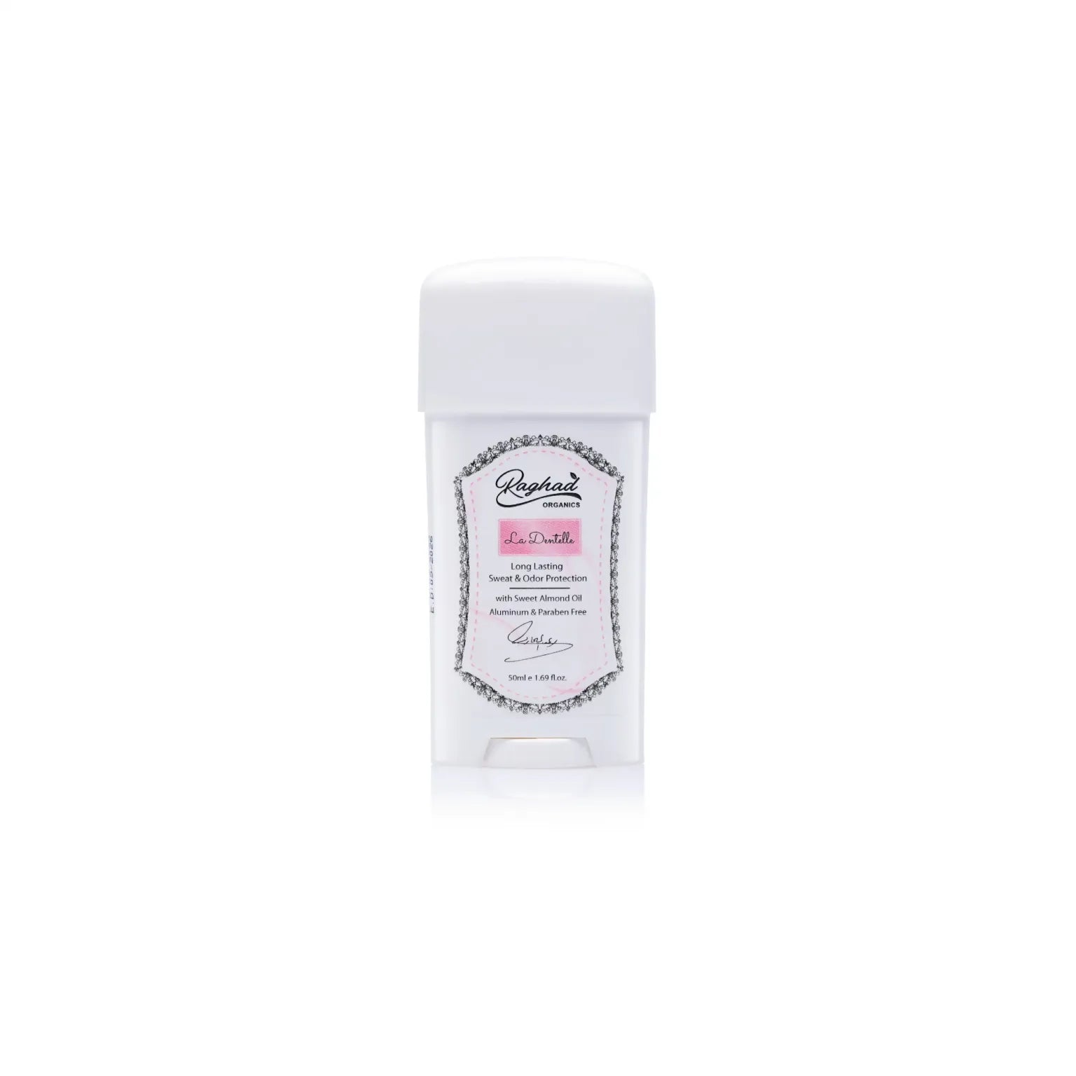 La Dentelle deodorant keeps the underarm area dry and odor-free for up to 48 hours. It is free from alcohol, aluminum, and harmful chemicals. The deodorant provides long-lasting freshness throughout the day with a rich fragrance of rose, sandalwood, and powder. La Dentelle deodorant offers superior care for the underarms with a formula enriched with natural oils like almond oil and coconut oil, helping to keep the skin soft, silky, more elastic, and even-toned. It is gentle on sensitive skin, helps soothe underarm irritation after shaving, and leaves no stains on clothes.