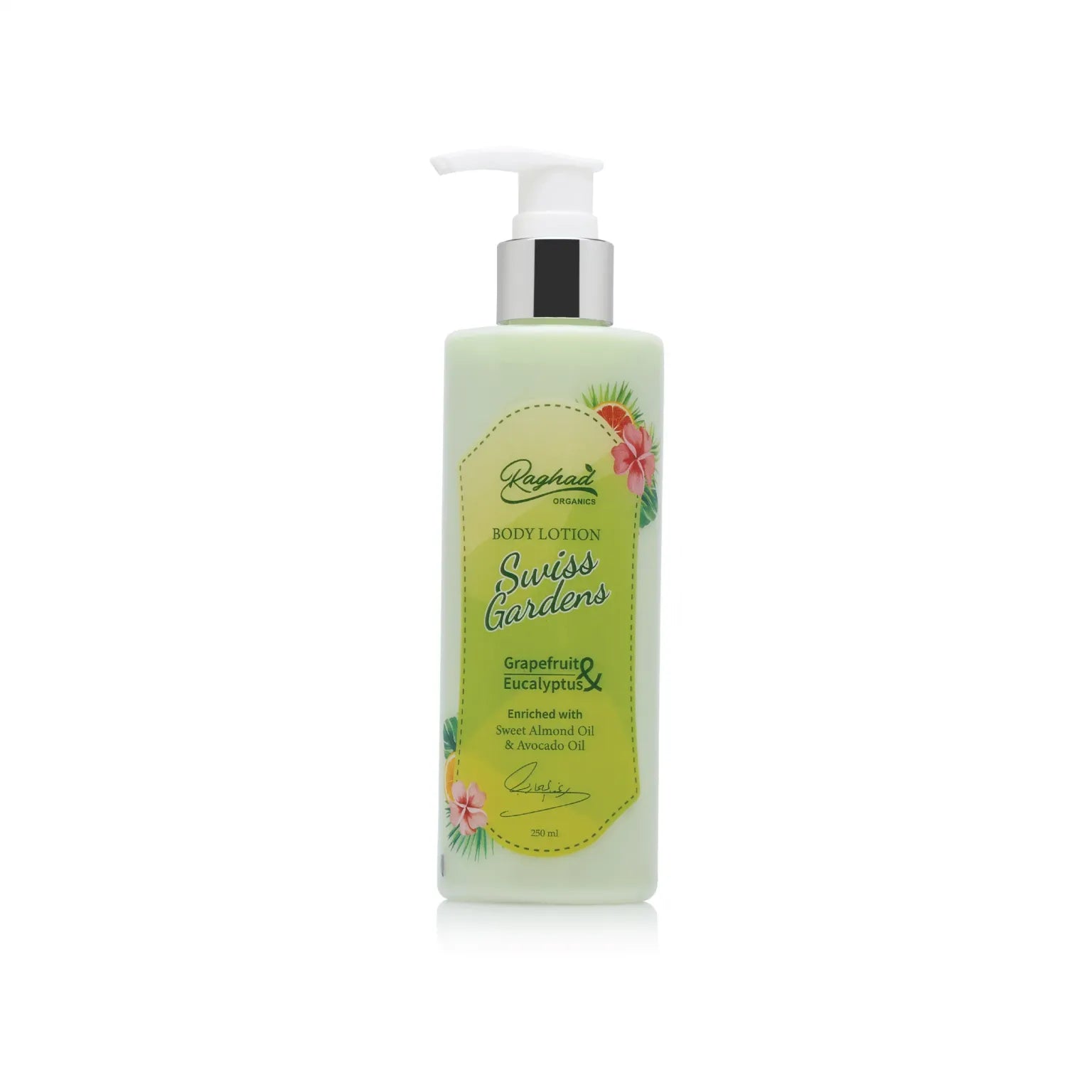 Swiss Gardens Body Lotion is a luxurious lotion that provides deep hydration, leaving your skin soft and refreshed all day long. It features a rich formula with natural ingredients like shea butter and sweet almond oil, which nourish the skin, enhancing its elasticity and vitality. The lotion also has a gentle, long-lasting fragrance, adding to the feeling of freshness and comfort.