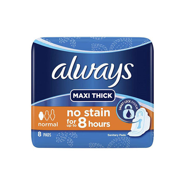 Always Maxi Sanitary Pads Normal 10 Pads have anti-leakage barriers and an extra layer of protection to give you a reassuring feel. Stretchable wings help keep the pad in place even when you are active. Dri-weave top layer guides liquid away from your skin.