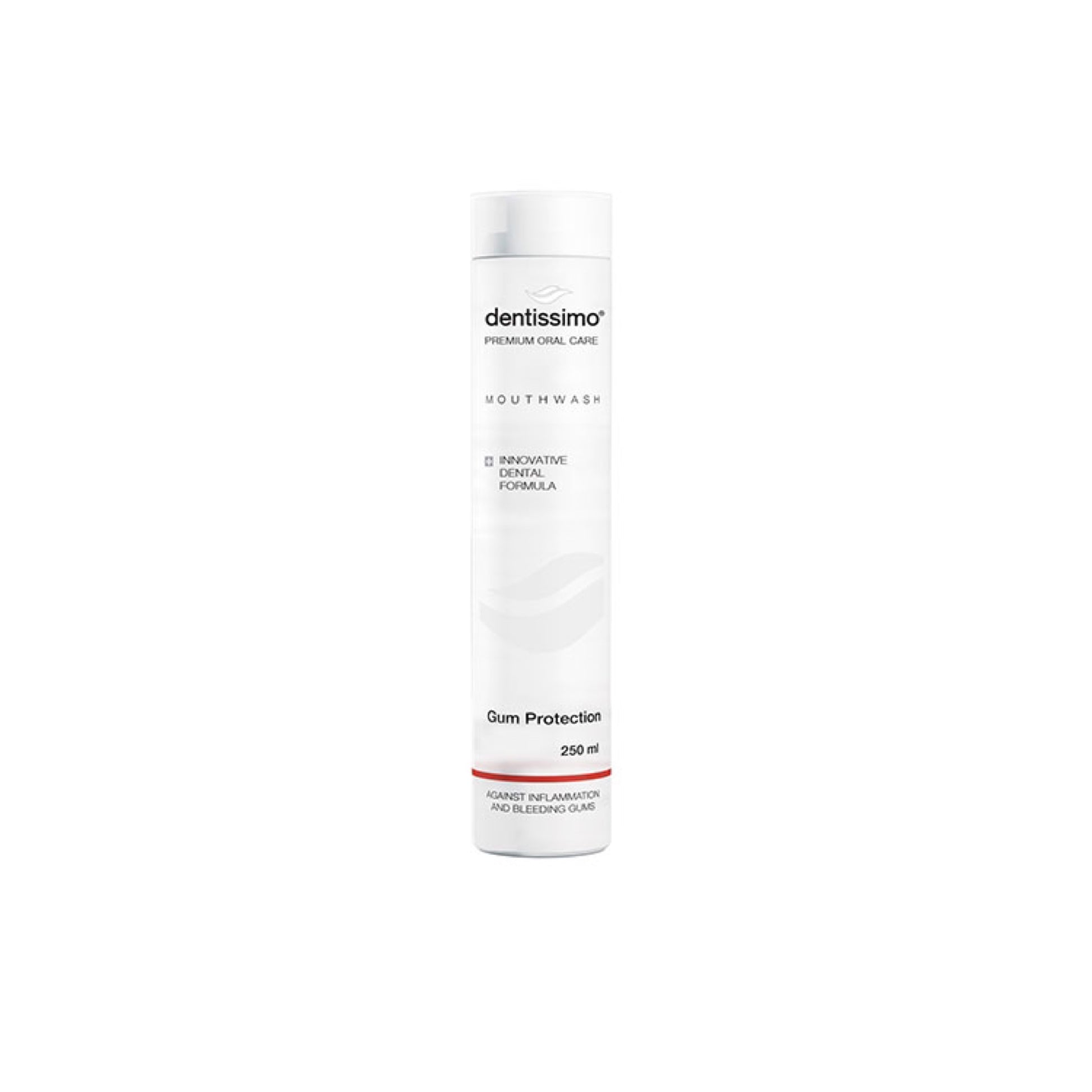 DENTISSIMO GUM PROTECTION M/W 200ML, mouthwash is daily tender care of gums and oral cavity, The mouthwash effectively stops gum bleeding, prevents caries formation,periodontitis and stomatitis because its natural herbal extracts provide anti-inflammatory, antibacterial and recovering effects in the oral cavity,it provides lasting fresh breath,This mouthwash is recommended for sensitive gums.