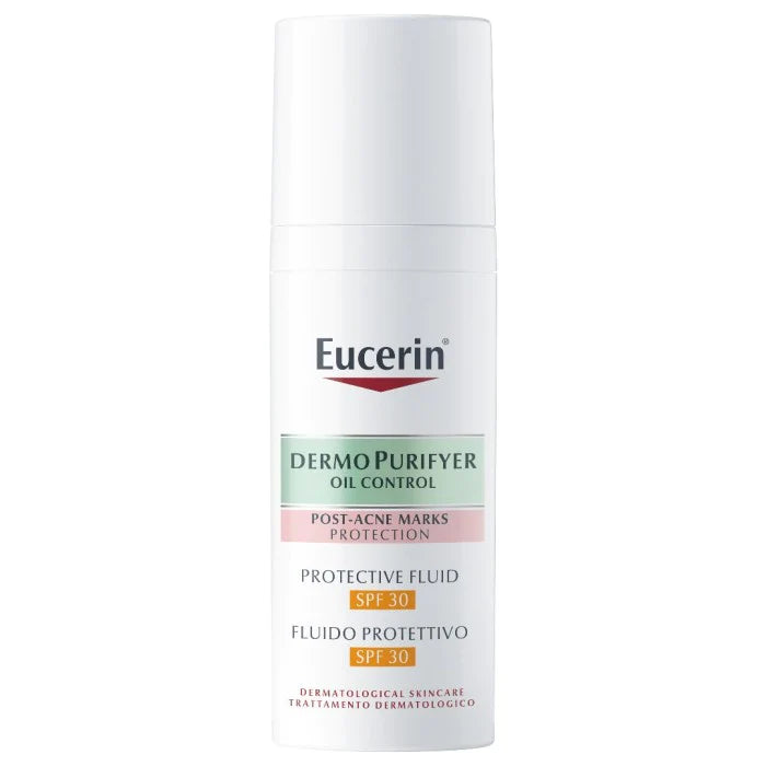 EUCERIN DERMOPURIFYER PROTECTIVE FLUID SPF30 enables you to prevent blemishes and finally beat post-acne marks (Post-inflammatory hyperpigmentation ) with 3 key factors: